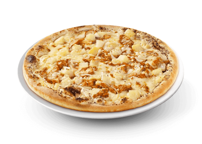Crème fraîche, mozzarella, jambon, ananas, herbes.